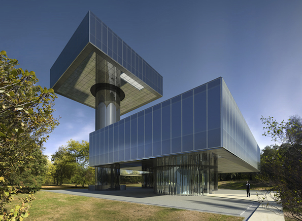 Called Villa Hush Hush, the building would be divided into four rectangular zones, two of which could be elevated. A mechanism would push the support columns out of the ground, elevating parts of the building by up to 131 feet (40 meters).