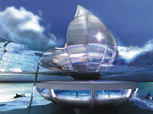 The bottom floor will also house a water treatment facility for purifying salty sea and rain water, along with a center to control water quality.