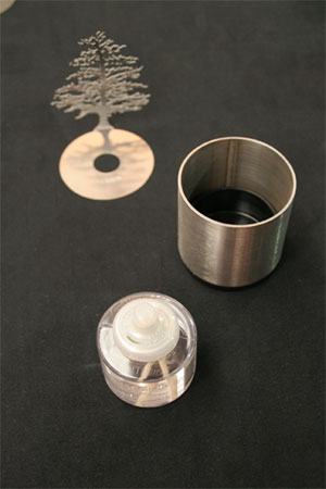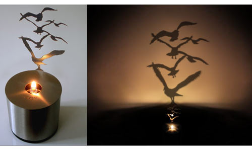 I absolutely love this brilliant design by Brooklyn-based artist and product inventor Adam Frank. Lumen is a series of acid-etched, stainless steel, oil lamp shadow projectors. The beautifully designed lamp throws a soft shadow on the wall when lit, as the flame flickers, the shadow moves about organically. The farther Lumen is from the wall, the larger the shadow. Lumen is American made with a stainless steel body and a polyethylene base to prevent scratching sensitive surfaces. Each piece comes with two 17-hour liquid wax fuel cells, which are odorless, clean burning, and meet or exceed all relevant safety standards. Lumen is one of the MoMA store‘s best selling items and is priced around $50. There are more places to purchase them however. You can compare the prices here if you like.