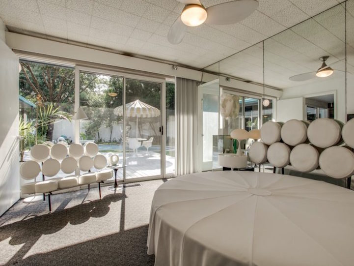 Graphic designer Carlos Cardoza purchased the four-bedroom pad in 1994. Embracing its stunning open-plan design and eager to restore it to its doo-wop days, he vowed to keep it completely kitsch with technicolor textiles, sci-fi shapes (the only place you’ll find more atomic starbursts is in the Jetsons’ sky-high house), and bubblegum paint colors. Floor-to-ceiling windows offer picture-perfect views of the retro pool out back and Cardoza’s flamingo-pink Cadillac in the driveway.