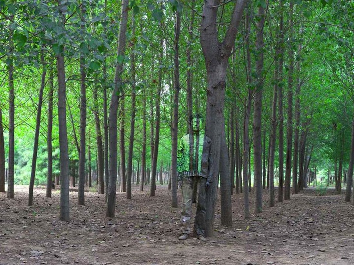 It's safe to say that Liu Bolin is a modern-day magician. In 2007, his advanced camouflage art exploded onto the art scene as we were all left speechless, scratching our heads at how body paint could seamlessly blend a person into their background. With a team of two assistants, Bolin paints onto his clothes and then spends hours positioning himself in front of backdrops until he's virtually invisible.