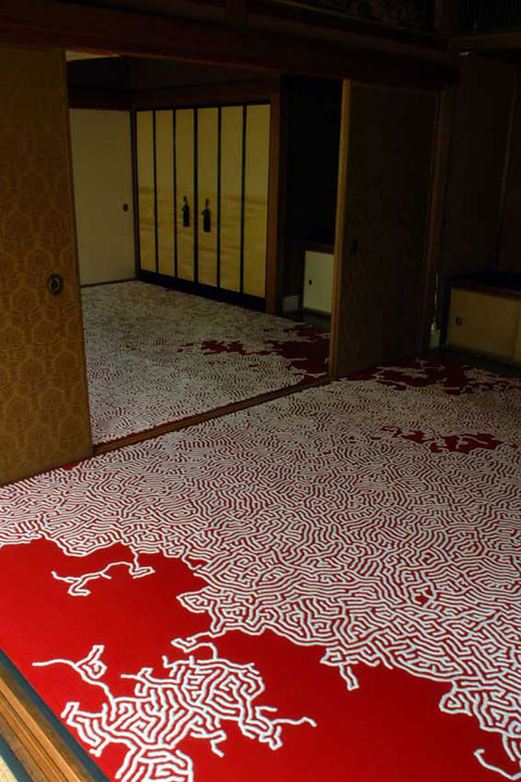 The story about why Yamamoto started down this path is a sad and tragic one. He was a third-year student at the Kanazawa College of Art in 1996 when his younger sister died at the young age of 24 – two years after being diagnosed with brain cancer. To ease his grief and to honor her memory, he starting working on these installations. Salt has a special place in the death rituals of Japan, and is often handed out to people at the end of funerals, so they can sprinkle it on themselves to ward off evil. Since 2001, he's been creating these amazing floor installations by filling a plastic bottle, usually used for machine oil, with white salt and then sprinkling it on the floor.