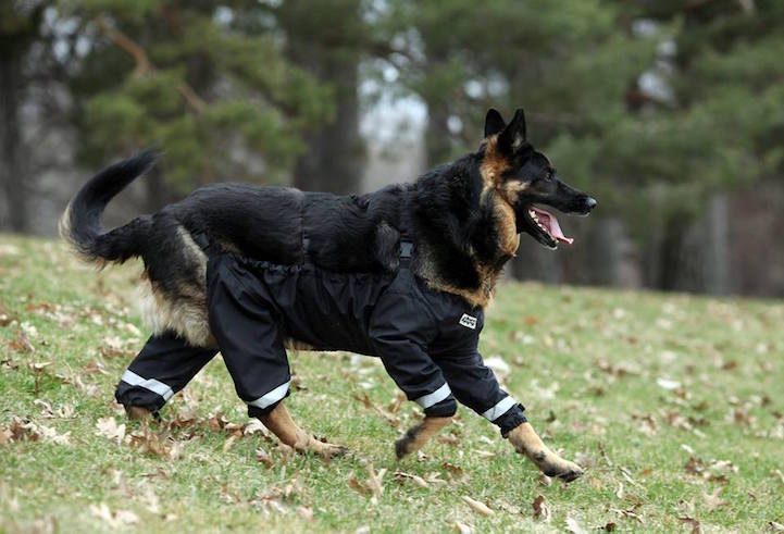 You can purchase a $69.99 pair of dog pants for your pup on the Muddy Mutts website.