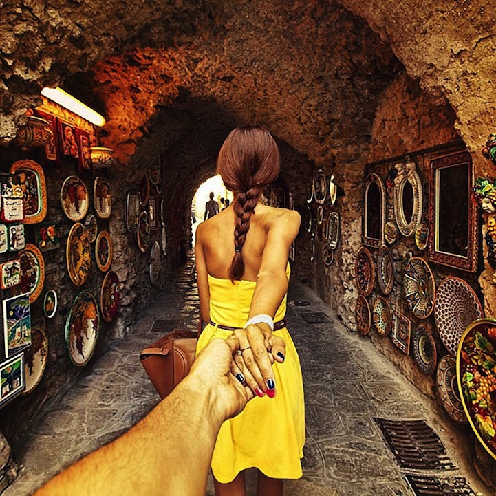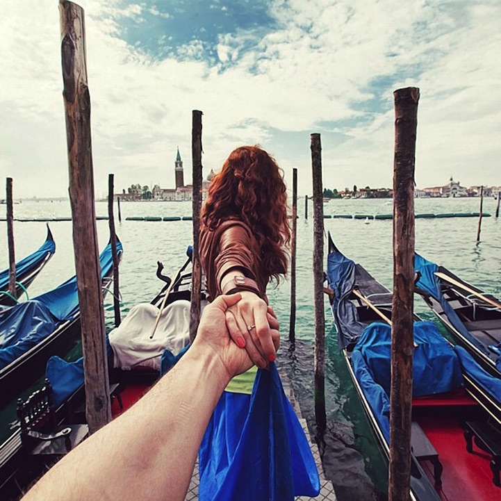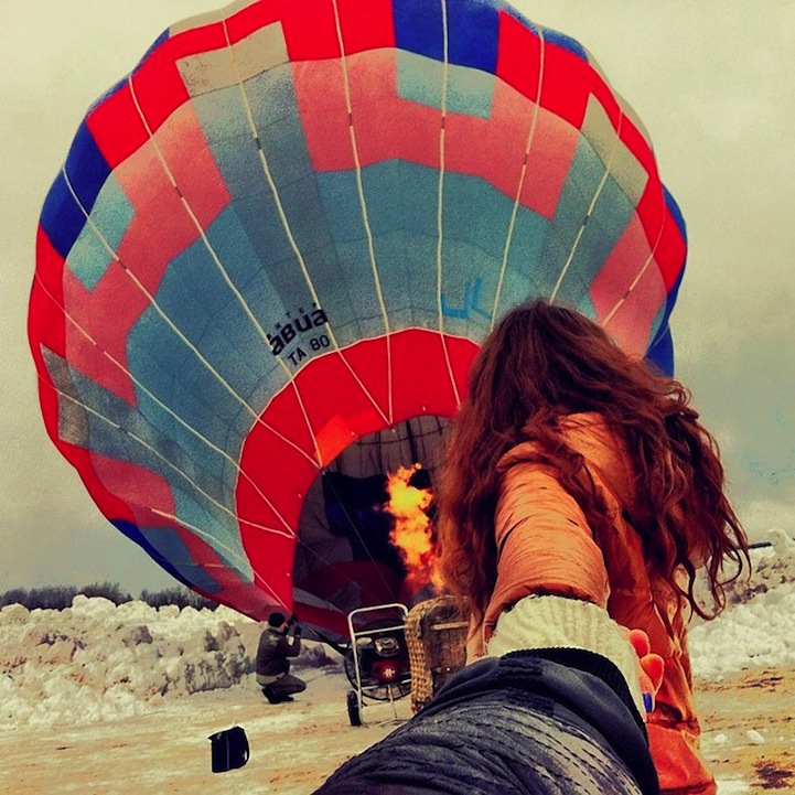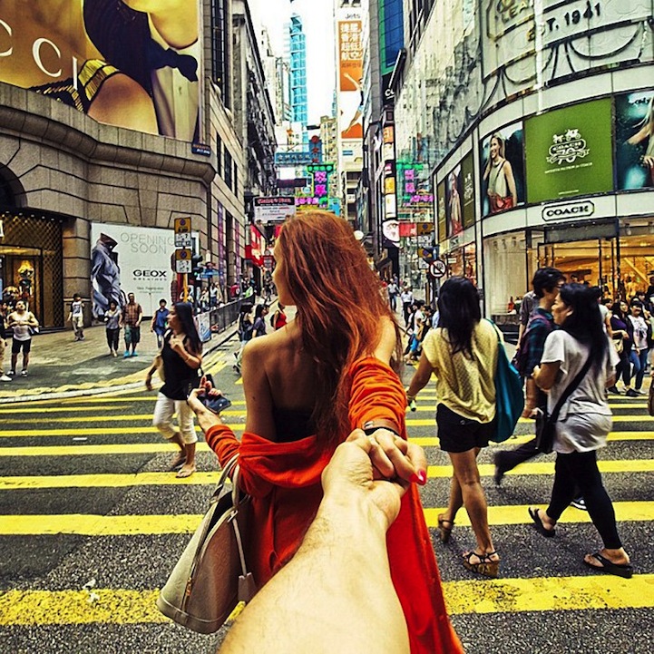 Photographer Murad Osmann creatively documents his travels around the world with his girlfriend leading the way in his ongoing series known as Follow Me To. Chronicling his adventures on Instagram, the Russian photographer composes each shot in a similar fashion. We see each landscape from the photographer's point of view with his extended hand holding onto his girlfriend's in front of him.