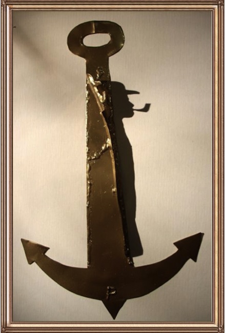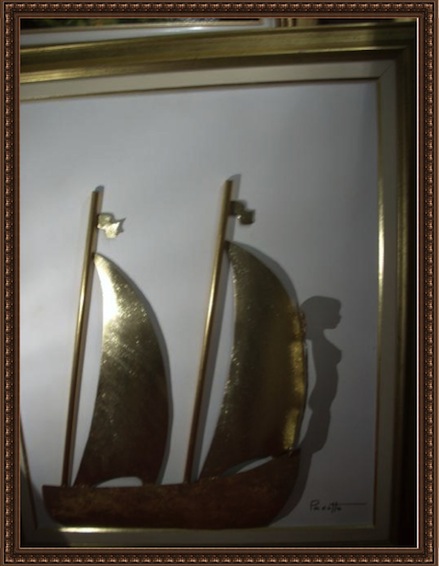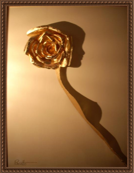 After welding sheets of brass, Pacotto finishes off his sculptures with 24 carat gold or silver. He then uses a projector to illuminate his pieces, and mysterious shadow characters magically appear. “It is the soul before which the body bends,” he says.