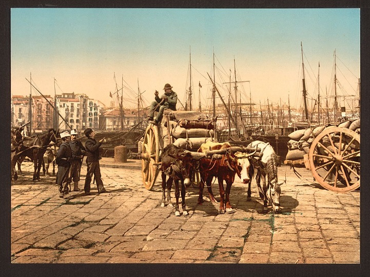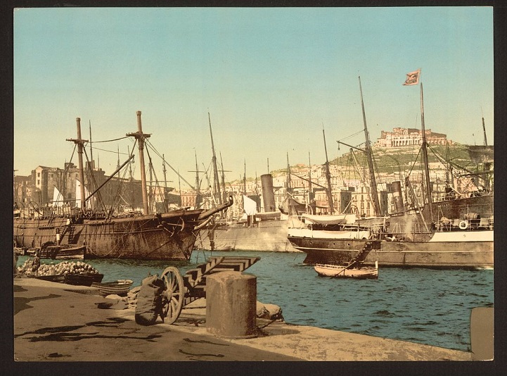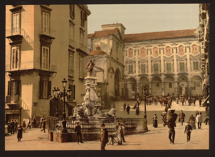This series of vintage prints beautifully captures a simpler and more idealistic side of Naples, Italy in the 1900's. From picturesque sea ports to the city's sweeping architectural feats, the scenes lend a distinctive antique feel that makes the collection stand out from modern postcards. Prints such as these were created as souvenirs, to be collected in photo albums and shared with future generations, giving a clear glimpse into the bustling street life and the agricultural growth of the port city.