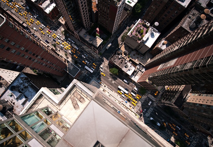 Our friend, New York-based photographer Navid Baraty, just sent word about an exciting series he's been working on. If you don't mind photography that gets you a little queasy, you'll enjoy this. Taken from high above, Baraty gives us incredible views of New York City – its historic buildings, its legion of taxis and and its very busy people.