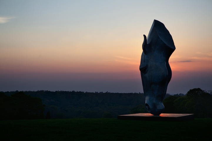 British artist Nic Fiddian-Green is best known for his signature sculptures of giant horse heads, which are often inspired by his own chestnut hunter George. He casts all of his own work rather than sending it out to be produced in a factory, and each piece is a one-of-a-kind, distinct carving, formed out of bronze and beaten lead.