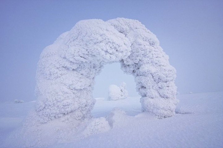 Snow is nothing new to wintry weather but Monza, Italy-based photographer Niccol Bonfadini captures a unique sight of the season in which trees are completely overwhelmed by snow and ice in subzero temperatures. The cloud-like shells in each image mask the trees in a frosty armor with nothing but snowy grounds surrounding them as far as the eye can see. The setting alone is spectacular, but the photographer's keen eye and patience offers a naturally surreal view of a frozen landscape.