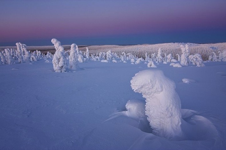 Traveling to the Finnish Lapland in the frigid cold of winter, Bonfadini has managed to snap shots of these frozen trees as though they are alien creatures emerging from the ground. With temperatures ranging from -40C to -15C, Bonfadini insists that the bitter cold was actually bearable, given the beautiful view. The photographer patiently camped out on the scene and awoke early enough to set up his camera for some truly spectacular shots of the landscape just before sunrise. One of his images, titled Sentinels of the Arctic, even wound up catching the eye of NASA as the Astronomy Picture of the Day.