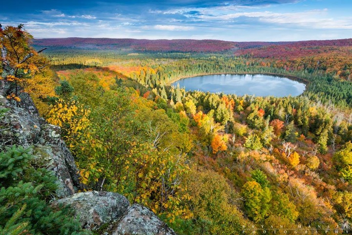 In the United States, you'd be hard pressed to find a more majestic spot to see the splendor of fall than on top of Oberg Mountain in Minnesota. After a moderate three mile hike, you'll be amply rewarded with stunning views of Lake Superior, Oberg Lake, and Moose Mountain. Come in the fall, and you'll look down upon a gorgeous maple forest that comes alive with colors.