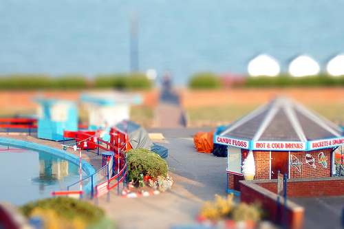 Talk about trippy. These are not miniature models, they are actual life size objects. Tilt-Shift miniature faking is a creative technique whereby a photograph of a life-size location or object is manipulated to give an optical illusion of a photograph of a miniature scale model. Most faked tilt-shift photographs are taken from a high angle to further simulate the effect of looking down on a miniature. The technique is particularly effective on buildings, cars, trains and people.