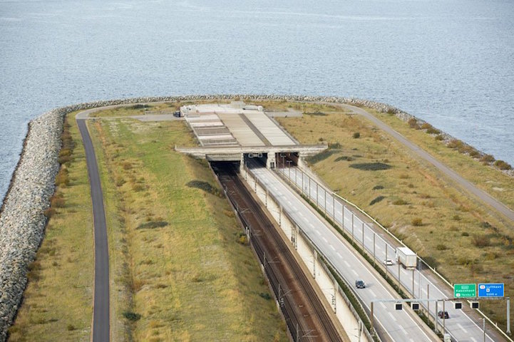 The Øresund has made it easier than ever before to travel between countries that are separated by water. This unique passageway connects the cities of Copenhagen, Denmark with Malmö, Sweden, doing so in two ways: a cable-stayed bridge runs five miles to an artificial island, where it then transitions into a tunnel that extends an additional two and a half miles. A motorway occupies the upper level while the railway line runs below.