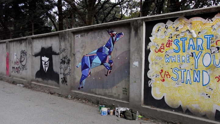 Japan-based American artist Daas is one of 60 artists who came from all over the world to give Nepal an artistic facelift. They were invited to paint 75 site-specific murals on Nepal's walls as part of an art project called Kolor Kathmandu, which began in January and will end on Thursday. Director of Kolor Kathmandu, Yuki Poudyal, was inspired by the street art that sprung up in western cities like Philadelphia and believed that Nepal's capital could be beautified once again by art, inspiring and attracting visitors for years to come.