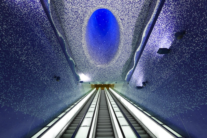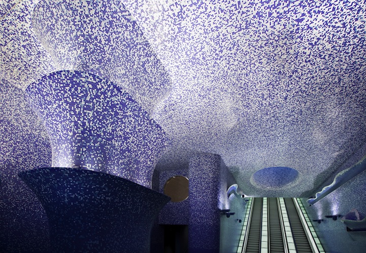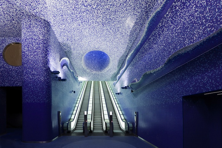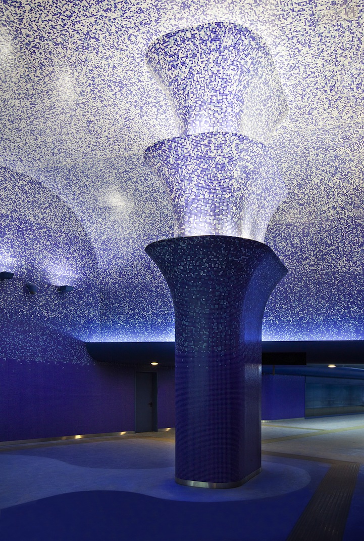 Blanca's firm collaborated with multiple artists to complete the shimmering, blue design that emits an underwater vibe. The walls are covered with large bisazza, or tiled, mosaics, and the escalators and hallways are softly illuminated with installations by lighting company AIA. Contributing artists include William Kentridge, Bob Wilson, Francesco Clemente, Ilya and Emilia Kabakov, Shirin Neshat and Oliviero Toscani. The final result has been voted “The most impressive underground railway station in Europe” by The Daily Telegraph–an exciting declaration that may just call for a trip to Naples!