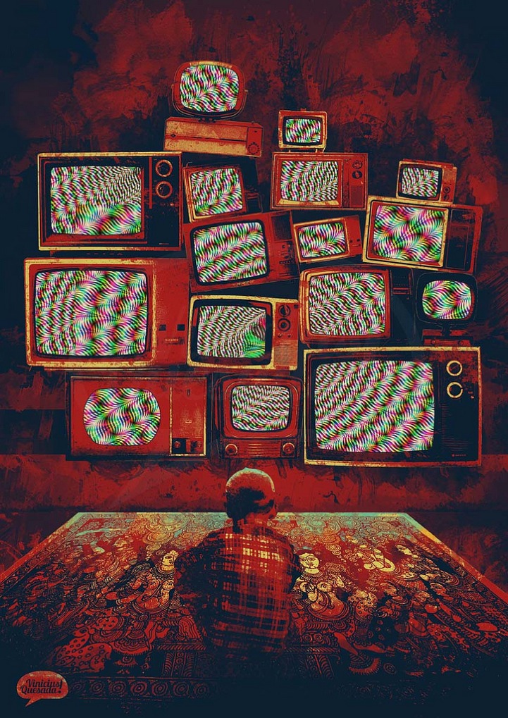 “When the image is ready, it receives computer retouches and special blood for things that can't really be drawn (like the screens on telemptyness). Then, I can enlarge it to the second collage, which is displayed on the streets.