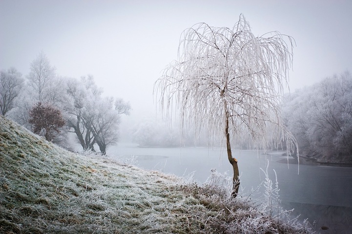 Baden-Baden-based photographer Patrick Hbschmann captures the frozen, muted beauty of wintery landscapes. Each frame of the German photographer's series titled Frost depicts a bewitching scene populated with trees whose wispy branches are either barren and cutting through the hazy atmosphere or lushly powered in white. In either case, the empty expanse, filled only with the mystifying ambience of nature, sets the scene for mystery and intrigue.