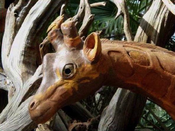 The carved wooden structure is completed with a human presence at the center of the wild frenzy with an outstretched arm holding the world in the palm of his hand. Like many of his other meticulously crafted pieces, A Matter of Time draws a connection between man and nature. The artist says, “A passion for nature has inspired me to create a body of work that is environmental in pith. I endeavor to capture a moment in wood or bronze that expresses potential for a symbiotic relationship with nature.”
