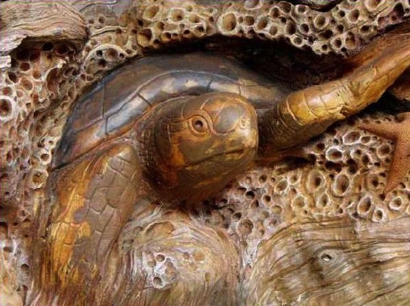 A Matter of Time is an incredible wood sculpture by artist Paul Baliker that features a variety of creatures from the animal kingdom. The massive and intricately detailed piece, which took 6 months to complete, presents itself like a three-dimensional mandala exhibiting the diverse species of life on Earth. The list of animals featured in the sculpture includes everything from an owl and parrot to a monkey, turtle, giraffe, and rhino.
