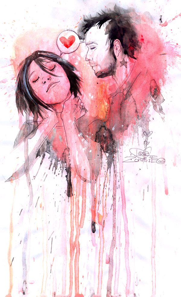 Lora Zombie, a young, self-taught Russian artist, calls her artwork “Grunge Art.” Heavily influenced and inspired by music, Zombie's artwork is absolutely stunning. Her pieces are defined but not confined by watercolor splatters that dominate the canvas. While the splatters may look chaotic, they are actually perfectly placed in an aesthetically pleasing manner. Each splatter looks thoughtfully placed, making these seemingly random pieces of art actually products of skill and patience.