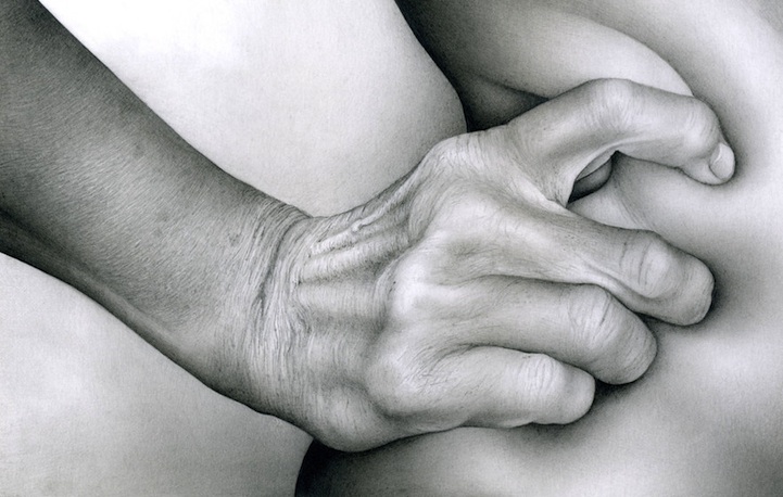 After being completely blown away by the amount of time and detail that goes into creating Paul Lung's amazing pencil art, I went looking for others that could match his artistry. I immediately found Cath Riley, an artist who's drawings of skin is like nothing I've ever seen. The way Cath sketches pinched flesh and wrinkles and her masterful use of shading sets her apart from all the rest. It's no wonder that her clients includes Nike, The Economist, and The New York Times.