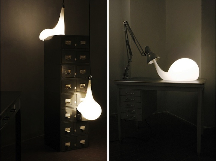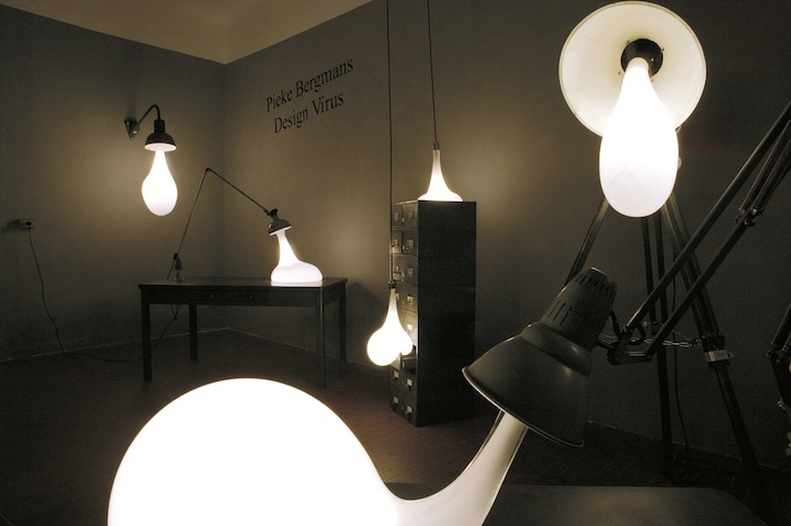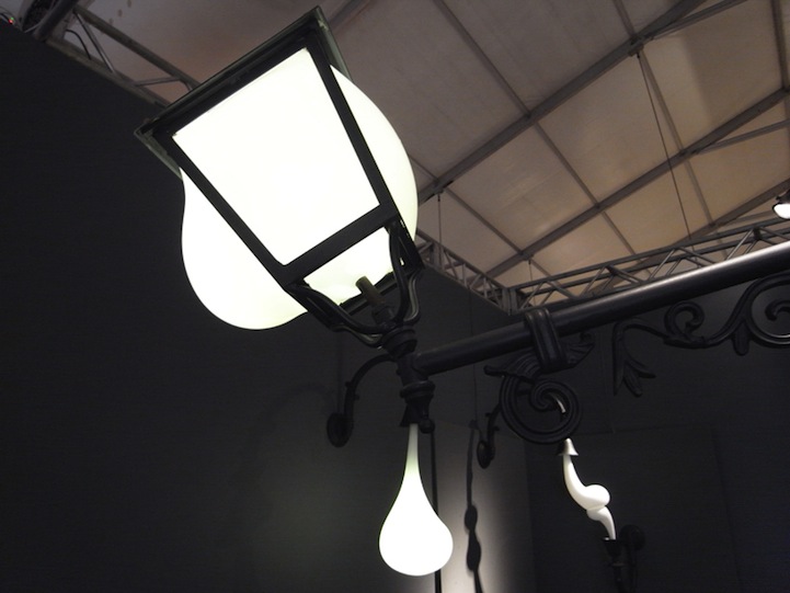 In addition to reconfiguring the towering illuminated poles, Bergmans adds a liveliness to glass bulbs with a similar approach. Both in Metamorphosis and her Light Bulbs series, the artist explores a variety of intriguing shapes that a glass bulb can take while retaining its identity. There is still a roundness to each of her creations, though they clearly stray from the generic light bulb form. They are revamped into bulging luminous blobs of light that seem almost gelatinous. They look squishy enough to mold with your own hands as they droop and settle into the curves of multi-textured surfaces. Walking through one of Bergmans installations can feel like you've just stepped into a cartoon by the likes of Tim Burton or perhaps a darker Dr. Suess.