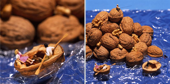 The clever stylings of these culinary masters feature witty arrangements and subtle humor that will make you smile. Commercial food photographers Pierre Javelle and Akiko Ida have been developing their playfully miniature series since 2002. Entitled Minimiam–a blend of the words “miniature” and “miam” (yummy in French)–the project documents the lives of tiny toy people set against delightfully delicious backdrops.