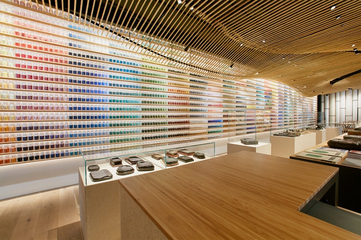With a sleek, modern design and thousands of colourful hues lining its walls, the new “art supply laboratory” known as Pigment is an art lover's dream come true. Owned by the Japanese company Warehouse Terrada and built under the architectural design of Kengo Kuma, this unique shop, based in Tokyo, acts as both a hub for artists to gather supplies and collaborate, as well as a venue that provides the opportunity for traditional material manufacturers to deliver high quality products that have been passed down for generations to their clients.