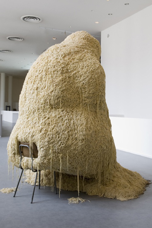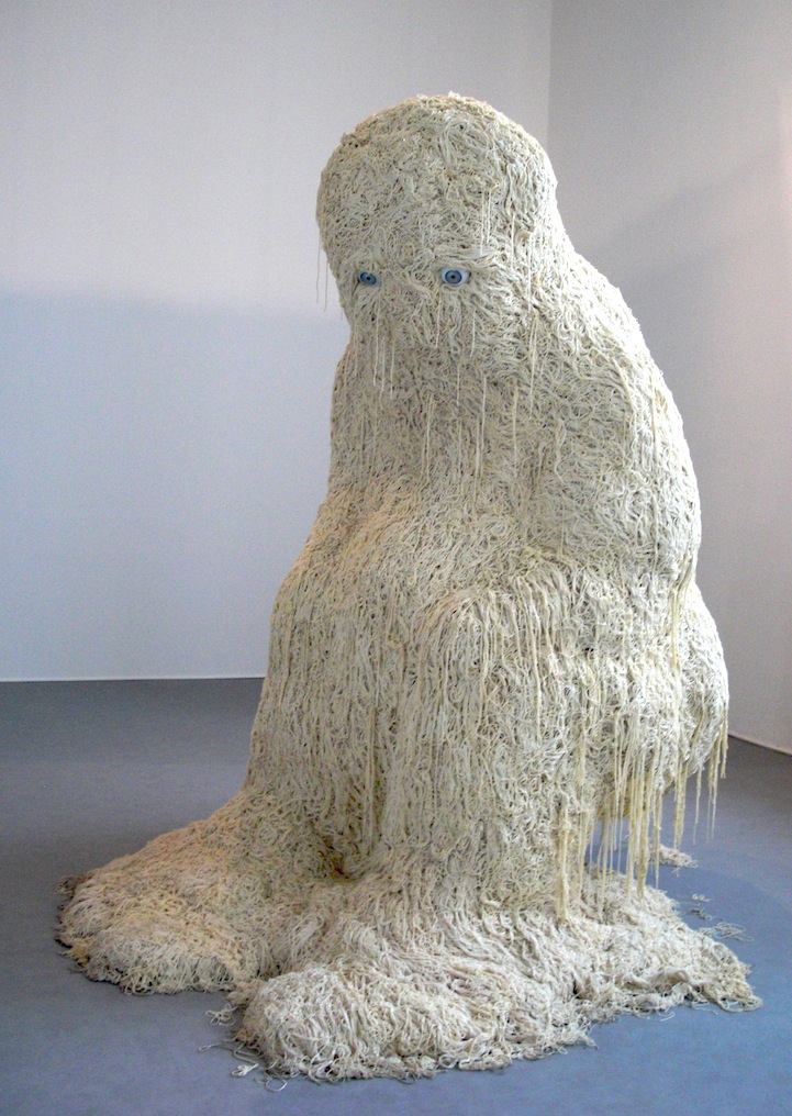 In 2010, French sculptor, painter, and photographer Theo Mercier created this very emotional piece, entitled Le Solitaire. Seated on a chair, the sculpture is basically a big pile of noodles slumped over in the shape of a person. The large eyes staring out at nothing create a sense of terrible sadness. With very little detail, Mercier evokes in his viewers a sense of empathy and a desire to reach out and help this lonely being.