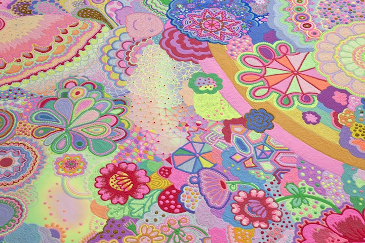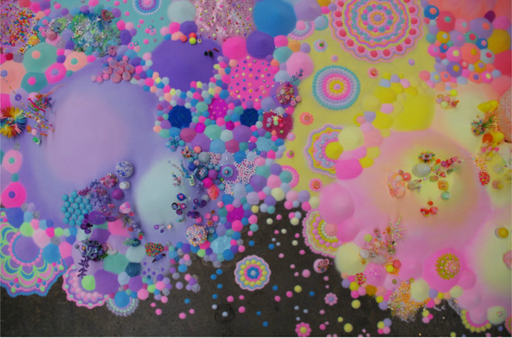 Sometimes you need a pop of color to give you the boosting sensation of a sugar rush. What better way to visually gain that surge of energy than feasting your eyes on colorful sugar? Australian artistic duo Pip & Pop configure these intricately patterned floor installations made of multihued sweets mixed with glitter, beads, toys, sand, and other equally vibrant found objects.