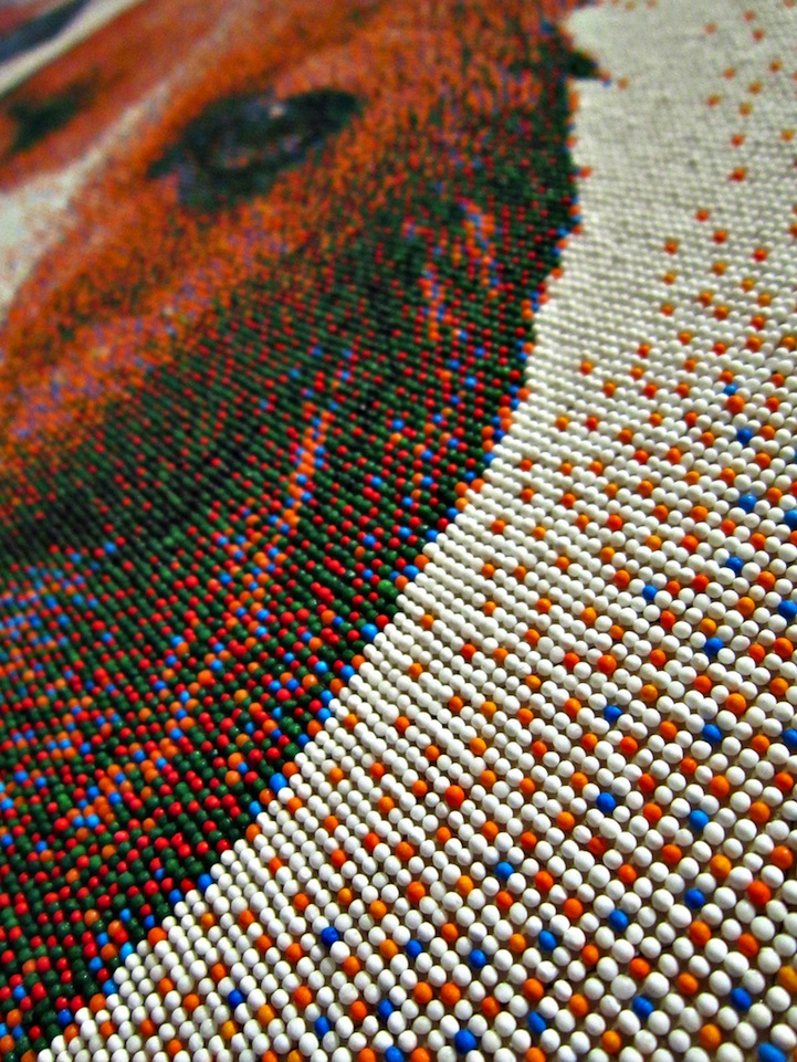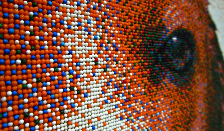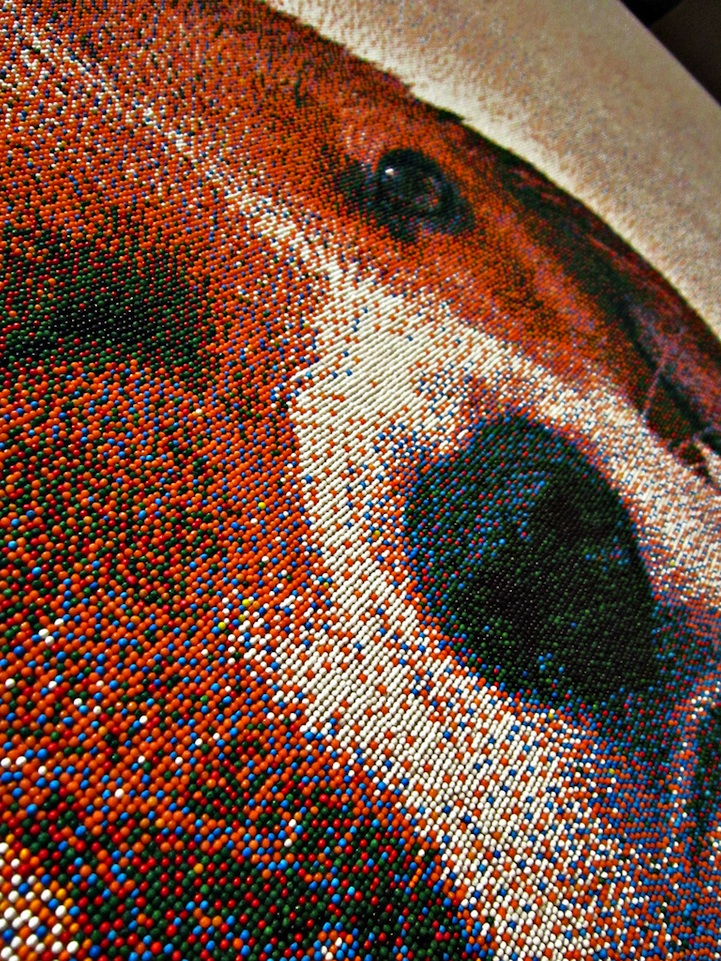 Astonishingly, Brochu only used six colors of sprinkles to create this 4-feet by 1 1/2-foot photorealistic piece. “Nothing was digitally manipulated,” he says, “all the colors you see were created solely with those six sprinkle colors.” The final image is best viewed at a distance of 16 feet. In total, 221,184 nonpareils sprinkles were used. Amazing.