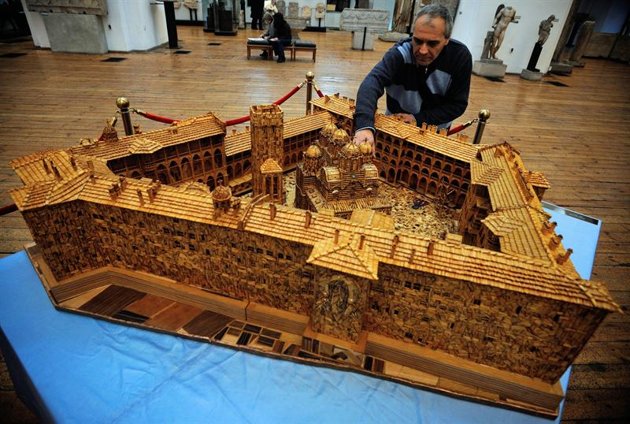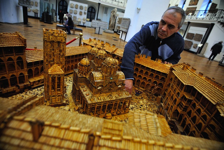 Think you have the time, dedication and patience to create an artwork like this? First, try and comprehend these numbers. 6 million matches. 16 years of life. Bulgarian artist Plamen Ignatov used that many matches and spent that much time to create this impressive miniature model of the Rila Monastery. Made of wood, matches and gems, it's now on display at the Museum of Archaeological in Sofia, Bulgaria.
