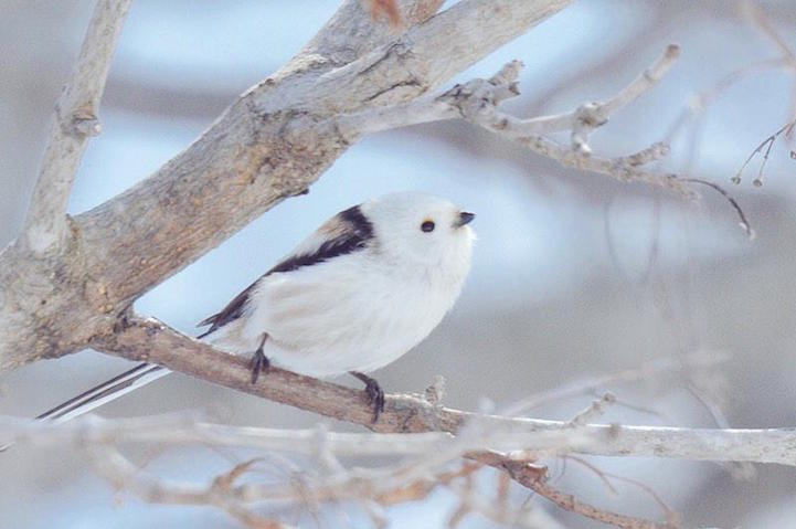 Unlike other long-tailed tits in Japan, the Hokkaido subspecies known as Shima Enaga have faces that are completely white. Young chicks have “eyebrows” typically associated with long-tailed tits, but these markings gradually disappear as the bird matures.