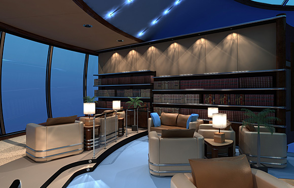 Guests gain access to their underwater suites through an elevator that transports them 40 feet undersea. Approximately 70 percent of each room is encased with a 4-inch thick clear acrylic that allows vacationers to look out at the coral gardens that surround their room. They can even interact with the marine life in the proximate environment. At the push of a button from their “control console,” guests can feed the fish around their suite. In addition to the unique living quarters, the resort boasts a number of amenities that includes a full-service spa, fitness center, and library.