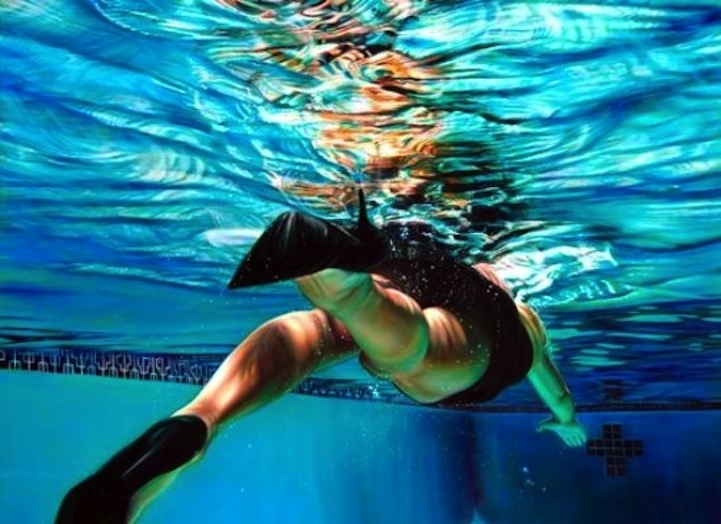 Her upcoming solo exhibition, Ablution, displays the reflective and transformative powers of water. Using oil on canvas, Fernandez manages to make her subjects look as if they're in shift – jumping into a pool with heels on or swimming fully clothed. It's interesting to note that these large paintings are actually based on performances by the artist. By embracing a strong love of metaphor and a dose of magical realism, they defy easy categorization of being simply one thing. Those familiar with her work will see a further questioning of modern society in this latest series. Questions of gender roles, divisions of labor and class are all posed in an arena of masterful painting that is unique to Fernandez. In an ever expanding definition of Ablution, Fernandez looks at literal, corporeal and spiritual facets of a word that has had great meaning in almost every culture.