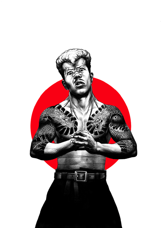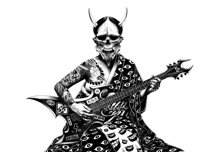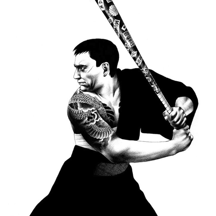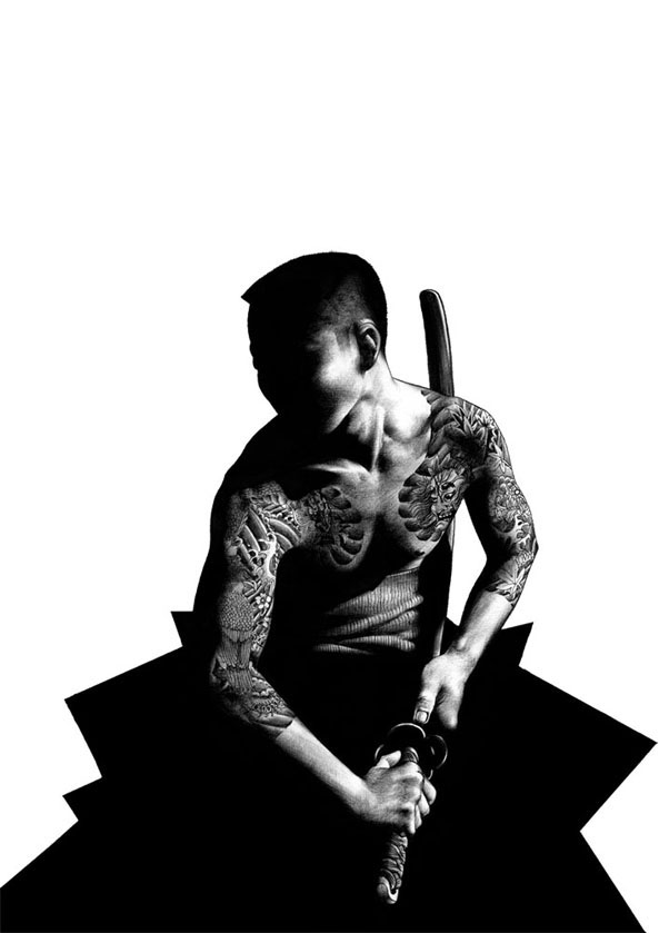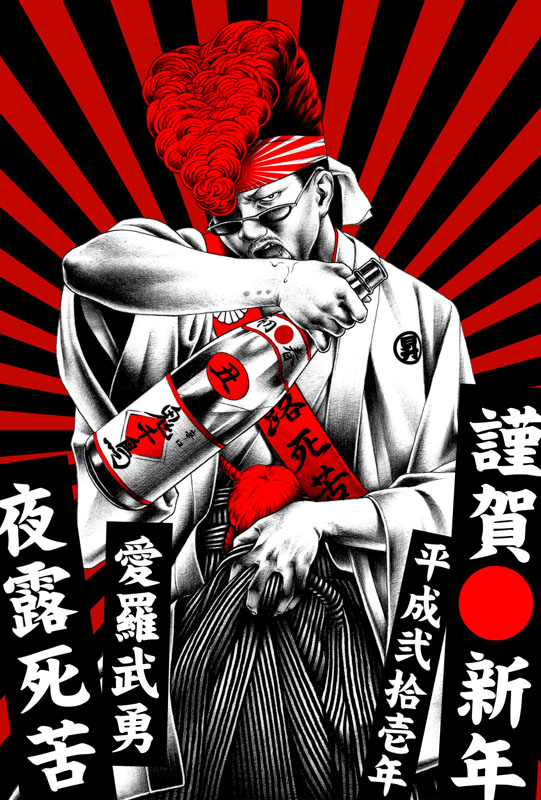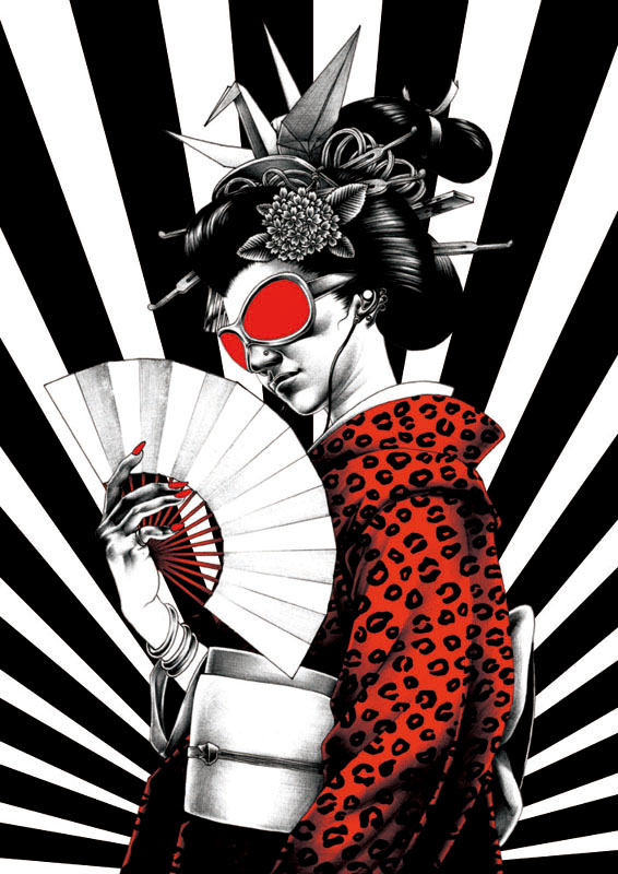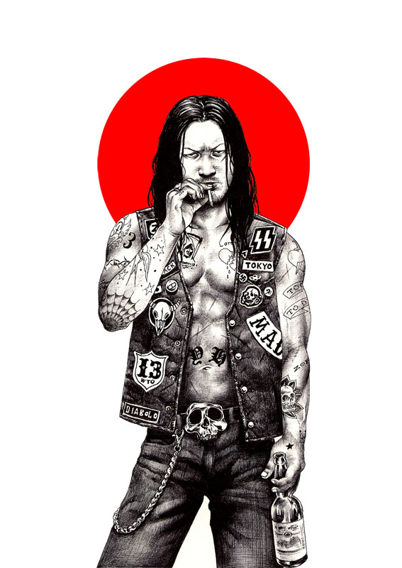 Japanese artist Shohei Otomo (aka Hakuchi) shows us that his motherland has a rockin' pop culture like no other. Using simple ballpoint pen, he mixes old and new school images with his references to the Samurai, Geisha girls, and the Yakuza. Above all else, one thing is certain, Otomo does not hold anything back with these extremely detailed illustrations.