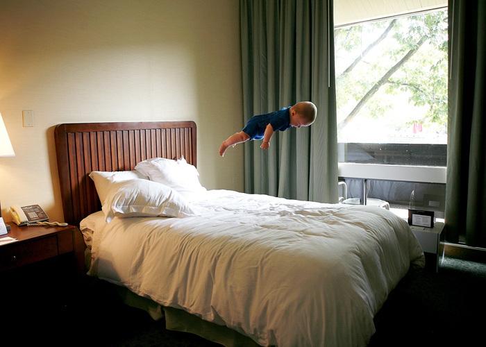 Last summer, photographer Rachel Hulin thought it would be fun to make her baby fly. So she looked to her son Henry to see what he could do. As she told Time, “I wanted the flights to feel genuine. These are places we are really in everyday, it's not a cut-and-paste job on random interiors and landscapes.”