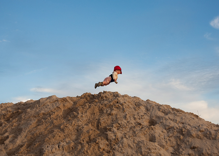 Update: We got in touch with Hulin to ask her if she might divulge her secret as to how Henry actually flies. Here's what she told us. “Everyone is very interested in how Henry flies, but it's really quite straightforward. I'm not sure if telling you exactly makes it less magical, but yes, Photoshop is involved, but only slightly. He never gets tossed. The frame you see is very close to the original picture, Henry just has no assistance in the final shot.”