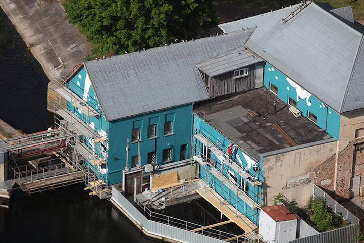 Suddenly, swimmers, swans, and rowers seem to be sitting atop the water at the Marijampolė, Lithuania location. Even a pair of legs appear to peek out of the water, as though diver has just gone headfirst into the river. Meanwhile the ripples give the illusion of movement–the swans, boats, rowers seem to glide across the water's surface. Clearly, all of this required an incredible amount of forethought on Bartkus's part. His impressive execution can easily be seen in the photo above, which has been enhanced to show the true intention behind the painter's intriguing artwork.