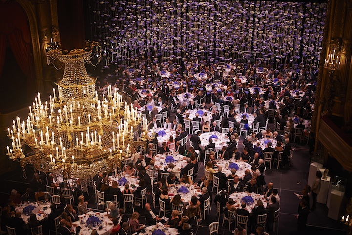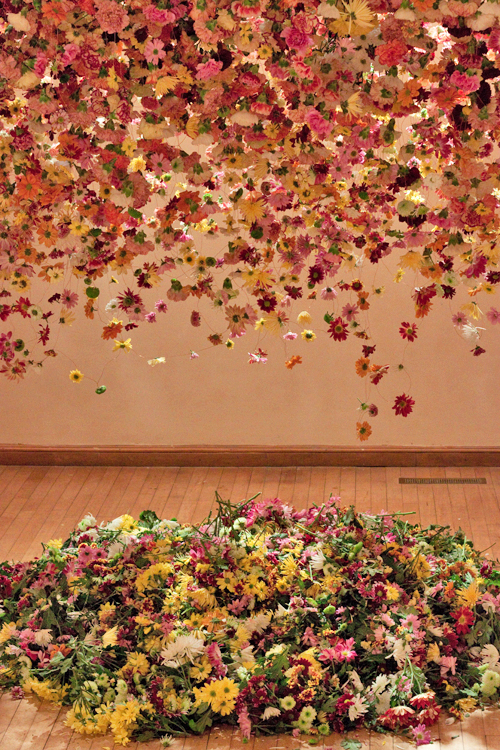 Looking through her body of work, you'll find that Law loves working on a grand scale. For a dinner sponsored by Hermes and held annually at the The Thtre Royal de la Monnaie in Brussels to raise money for opera, she hung 6,200 blue and green hydrangeas on copper wire. Incredibly, they looked as if they were magically raining down on the stage below (see last three images).