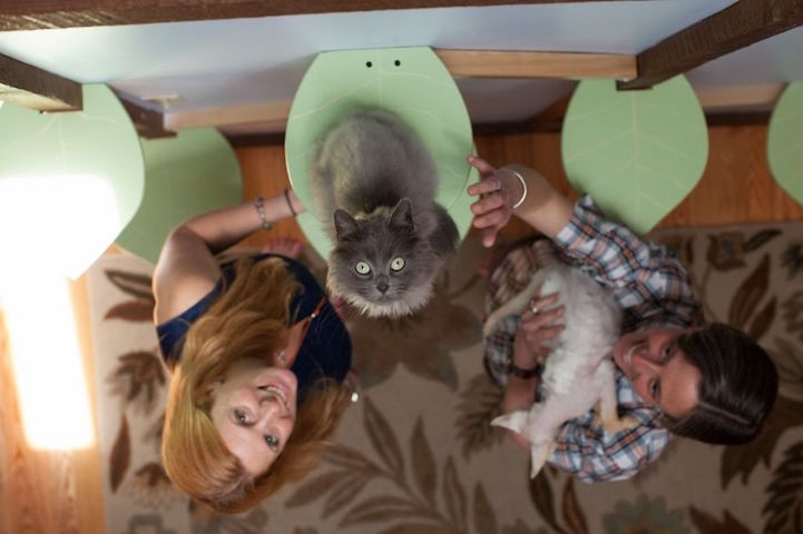 For three months during the spring of 2014, Rebecca Mountain of Mountain Pet Products undertook a big “catification” project for her friends Eliza and Tiffany. The couple had just bought their first home and was also combining their two households—including seven felines and three dogs. With that many animals, Mountain knew that having a “cat only” space was going to be an important part of their new home.