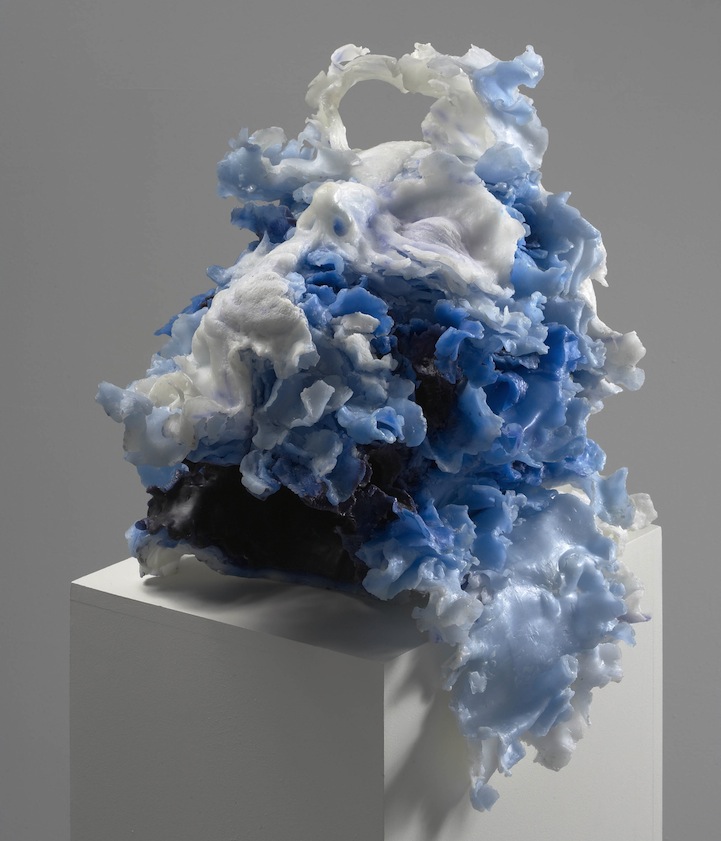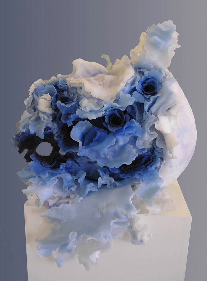 Stevenson transforms her sculpted heads into intriguingly abstract structures by crinkling and flowering out the resin rather than simply encasing the structure. The result is an unusual image that beautifies the disintegration of these people. The artist's body of work echoes this aesthetic process of building and destroying, presenting equal parts bodily form and artistic embellishment. Stevenson's work exhibits a clear fascination with human anatomy and the liberties of applied art.