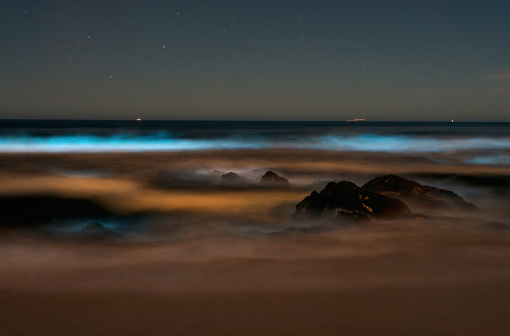 This natural phenomena is the result of bioluminescence, and it's what makes an organism able to glow in the dark. Fireflies and plankton also have this trait. The sparkles that Douma photographed were caused by a dinoflagellate species called Alexandrium fraterculus. It's nontoxic (unlike Noctiluca, another dinoflagellate species), and scientists aren't exactly sure why it shines. Some think that the Alexandrium fraterculus uses it as a defense mechanism. The crashing waves could've disturbed it and caused this light.