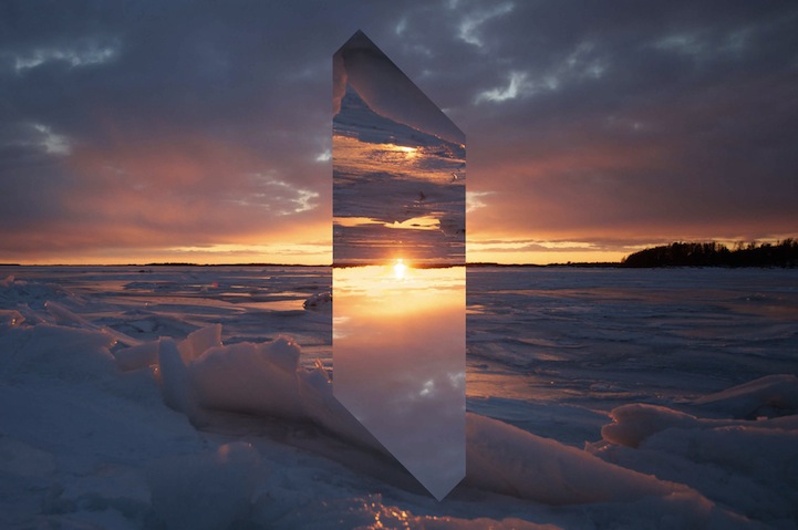 In this series, entitled Landscape Monolith, Reynald Drouhin alters crystal clear landscapes by turning sections of the land upside-down. Each odd shape, placed directly in the center of the horizon, offers a small window into a distinct, new place that perfectly blends with the surrounding world.