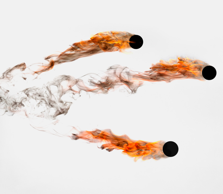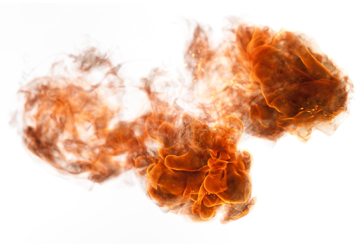Each of his scenes features bright bursts of fire captured against a stark white background. The photos were taken in the split second they were visible before vanishing, and then were slightly touched up. The explosions are so intense, you can almost feel the heat being given off. Prideaux says the collection is his “quest to shape one of the more uncontrollable phenomena [fire] in nature.”
