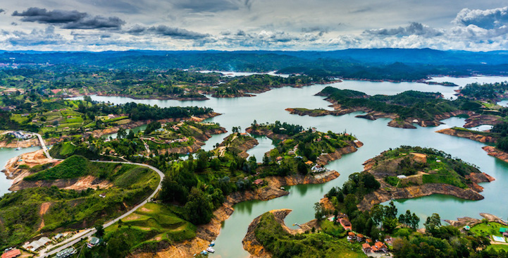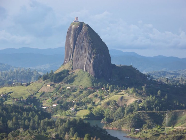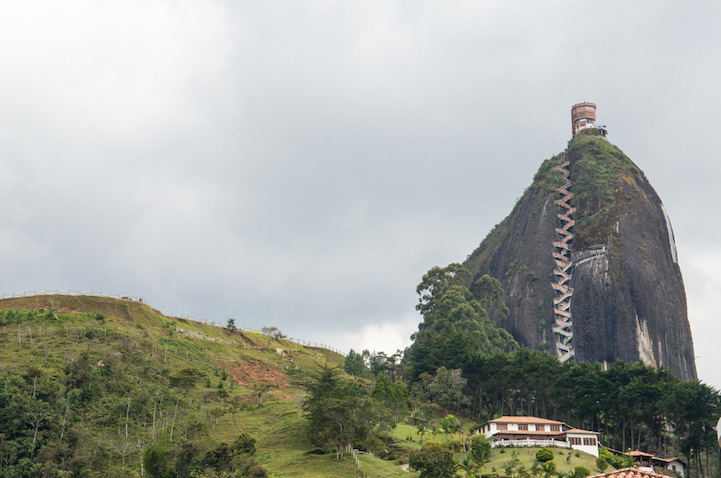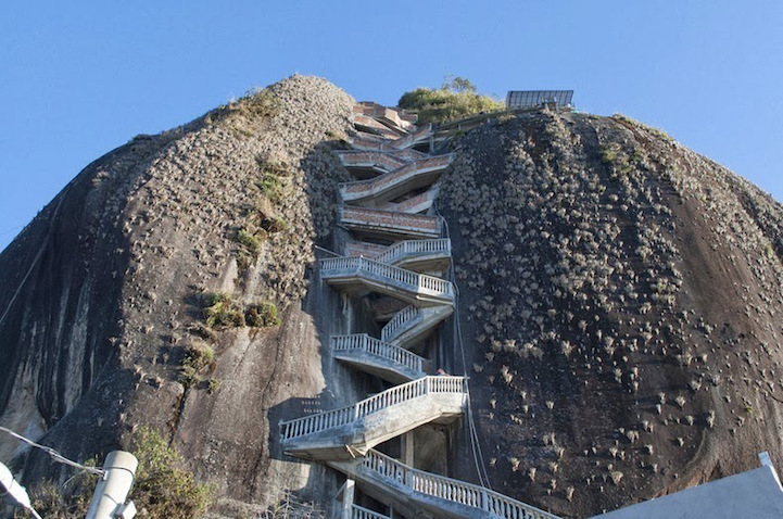 The small town of Guatap, Colombia has a unique landmark that attracts a countless number of visitors each year. The Rock of Guatap is 7,005 ft. high and provides 659 steps for visitors to climb to the top. At the peak of this magnificent rock, tourists are rewarded with marvelous views of the majestic countryside. There is also a small area that provides visitors with postcards and souvenirs after they have completed their journey.