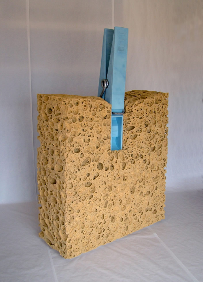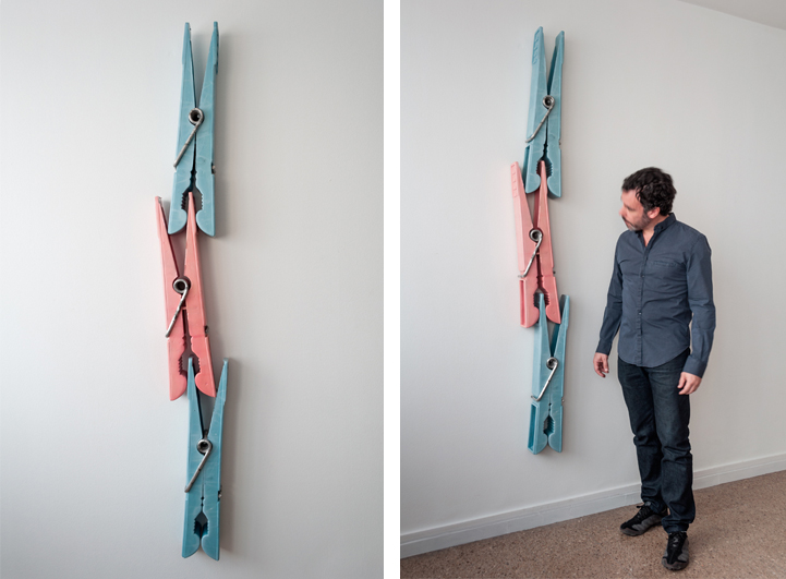 The gigantic sizing acts like a magnifying glass for these objects. By blowing up the small details, we see characteristics of the item that we'd normally miss because they're so small. At this oversized scale, the zig-zag surface pattern on a hot water bottle becomes much more pronounced, as does the joints of clothes pins. A pen cap also showcases the wear and tear that comes from chewing on it too long. It's these nooks and crannies that invite us to carefully explore each of Celdrn's works, making them a joy to view.