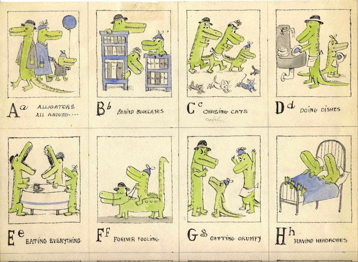 Storyboard for Alligators All Around. Pen and ink, watercolor. Maurice Sendak, 1962, all rights reserved. Courtesy Rosenbach Museum & Library.