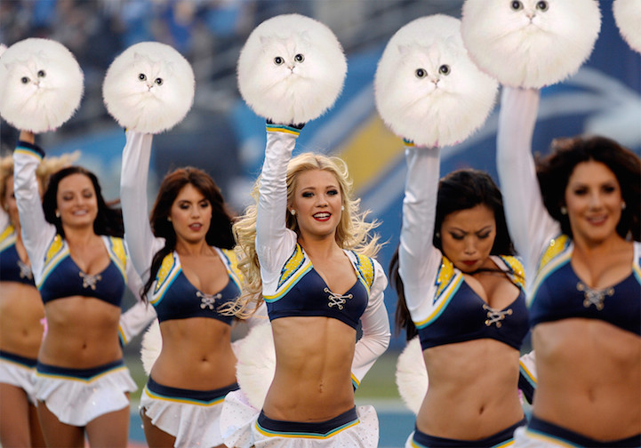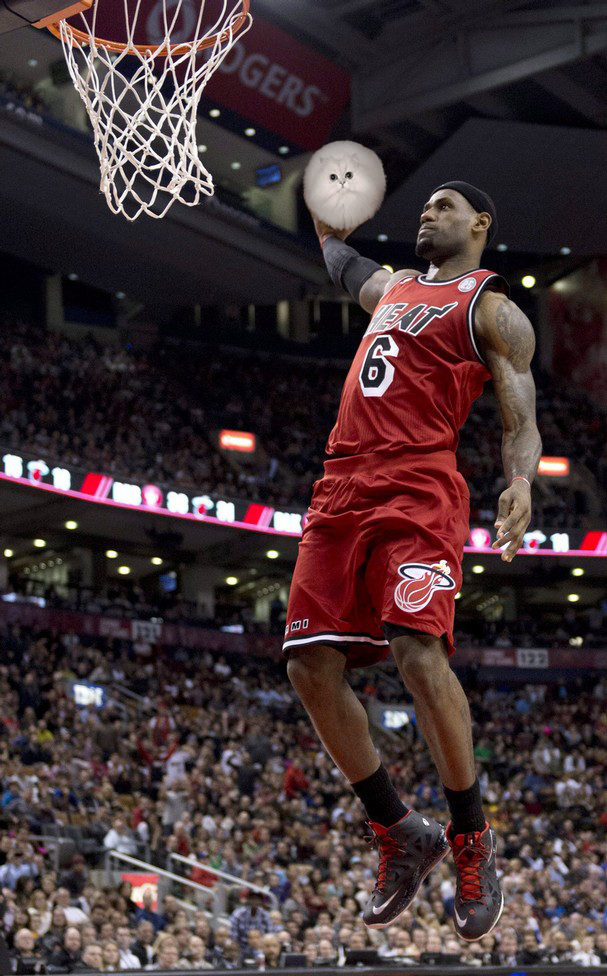People took advantage of the feline's easily-Photoshoppable shape and imagined it as a variety of objects. We see that it has taken on the role of a dandelion, cheerleaders' pompoms, and even a basketball in the hands of the famous LeBron James. And with Miley Cyrus' wrecking ball, the PsBattle highlights a strange-yet-entertaining collision of different popular culture phenomena.
