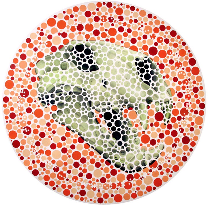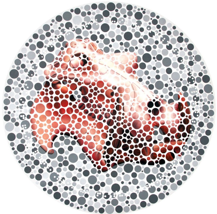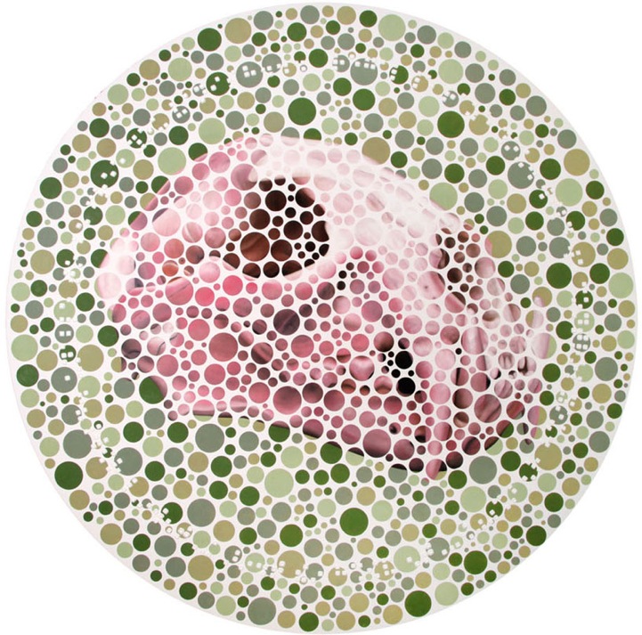 Color Blind is a series of circle patterns that form visually interesting images combined with Braille messages. The concept of the project is based on the Ishihara Color Vision Test, which is a test used to diagnose color blindness. Nachum explains his project, “The image is formed by a field of colored circles that function as ‘pixels', and in each a Braille message is written as a circle within the circle. To a colorblind viewer these images would be visible but relatively hidden, demonstrating that human perception is variable and considerably subjective.”